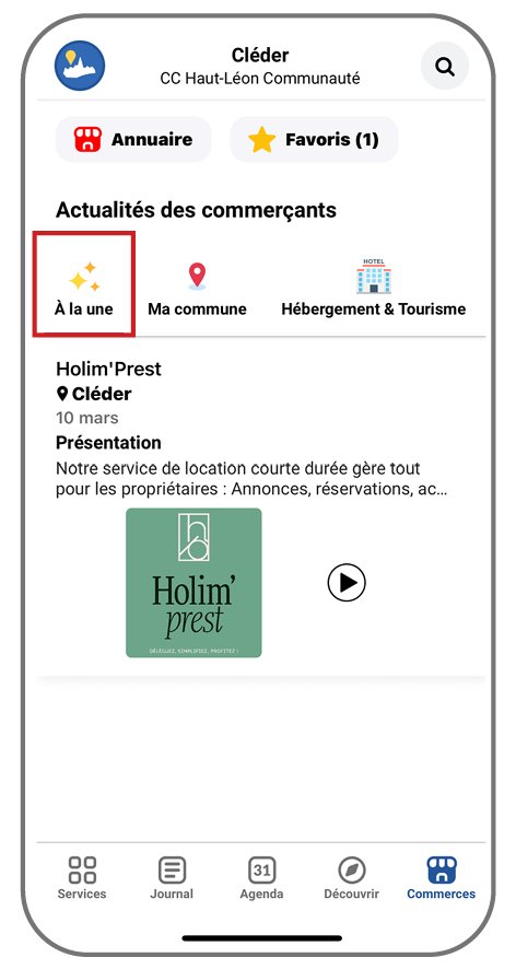 đ° Retrouvez ensuite toutes les informations, promotions, Ă©vĂ©nements et nouveautĂ©s de vos commerces favoris dans la rubrique « Ă la une » de lâonglet « Commerce ».