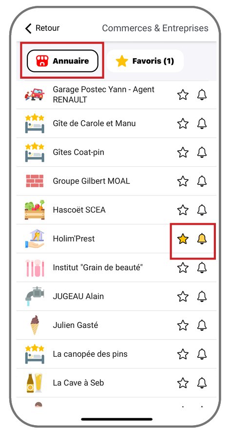 En activant đ dans la fiche dâinformation de vos commerces favoris, vous recevrez les notifications des alertes de ces commerces.